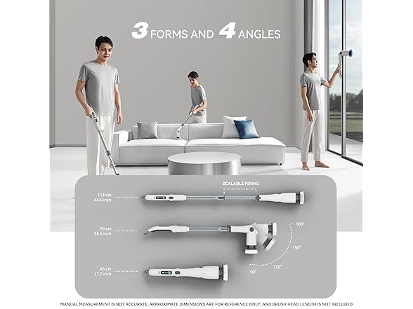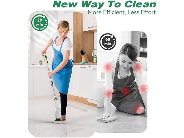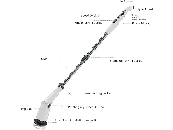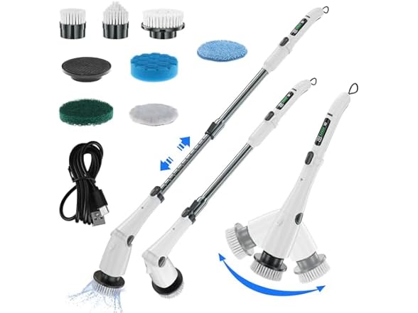 - Adjustable Brush Head, Ideal for Hard-to-Reach Spot: Unlike others, the brush head angle is adjustable and flexible. No need to bend over or change positions while cleaning, and this electric spin scrubber can adapt to all kinds of hard-to-reach places, such as the shower head or faucet gap.
