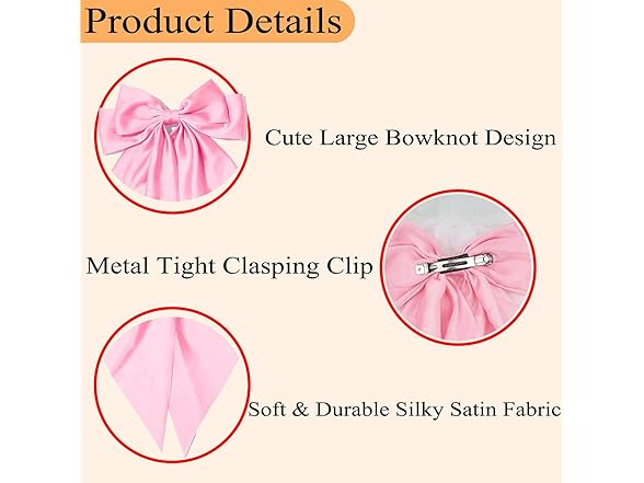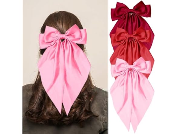 Red and Pink Hair Bows for Women Girls, Oversized Large Coquette Bow Aesthetic Hair, Silky Satin Long Tail Bowknot Hair Ribbons Big Bow Clip Accessories Trendy Stuff