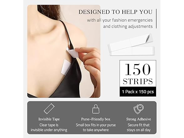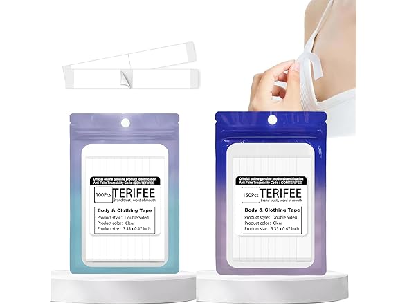 TERIFEE 150PCS Double Sided Body Clothing Tape, For Fixed Clothing, Shirt, Lingerie, Dress, Pants,Etc 3.35x0.47Inch Clear Fashion Clothing Adhesive Tape for Women Clothes to Skin