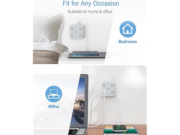 - Suitable for Any Occasions: This multiple plug outlet is easy to use, apply for any indoor place with socket, especially for the living room, bedroom, bathroom, kitchen, hotel, office and college dorm room