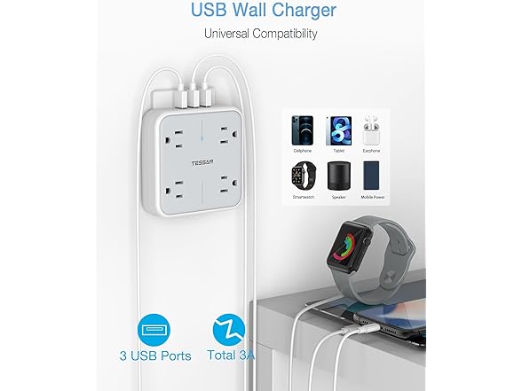 Multi Plug Outlet Extender with USB, TESSAN Surge Protector Outlet Splitter with 3 USB Wall Charger, Multiple Plug Expander for Travel, Home, College Dorm room