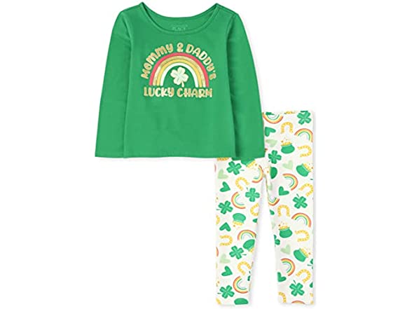 The Children's Place Baby Toddler Girls St. Patrick's Day 2-Piece Set, Simplywht, 4T