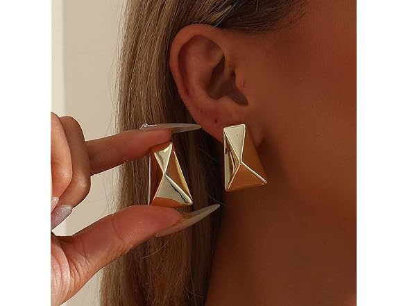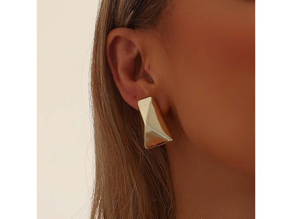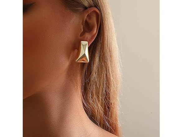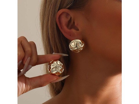 Chunky Gold Earrings for Women 14K Gold Plated Hypoallergenic Stud Earrings Lightweight Earrings Gold Statement Earrings for Women Trendy Gold Jewelry