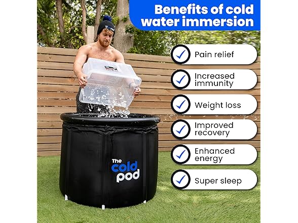 - HEALTH BOOSTING BENEFITS - The Cold Pod Ice Tub is a form of cryotherapy - in which the individual sits in ice water following physical exertion. Cold water immersion has been shown to facilitate a myriad of benefits after athletic performance, including rapid recovery, decreased muscle soreness, reduced injury and increased immunity