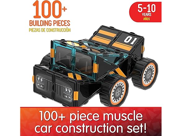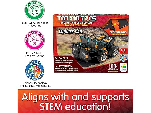• (1) The Learning Journey Techno Tiles - Muscle Car - Construction Project with 100+ Building Pieces - STEM Projects for Kids Ages 5-10 - Engineering Activity for Girls & Boys