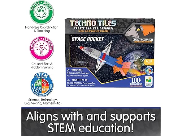 It’s never too early to start developing kids’ creativity and Techno Tiles are a great place to start. Basic shapes can turn into grand masterpieces. Simply connect the shaped tiles with the Snap-On two-way and four-way connectors and watch your structures come to life. From rockets to unicorns, vehicles and abstract structures, Techno Tiles puts no limit on your imagination. Each set includes over 100 pieces including squares, small triangles, large triangles, two-way connectors, and four-way connectors.