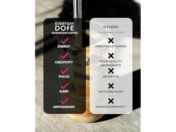 - Coffee Got An Upgrade – Everyday Dose is a healthy, alternative to regular coffee. It’s everything you love about coffee with none of the jitters & crashes.