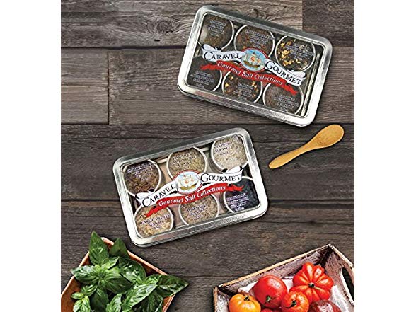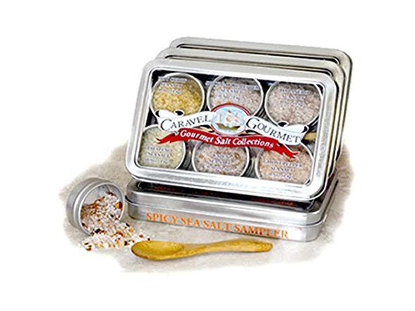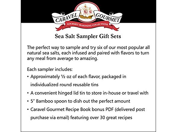 - GREAT AS A GIFT OR FOR YOU: Each sea salt sampler is packed in a reusable tin, with the set wrapped in another resuable tin box. And the little wooden spoon you see is also included - perfect for doling out the exact portion of each salt that you want to use. This beautiful set makes a great gift for your favorite foodie - or as a treat for you.