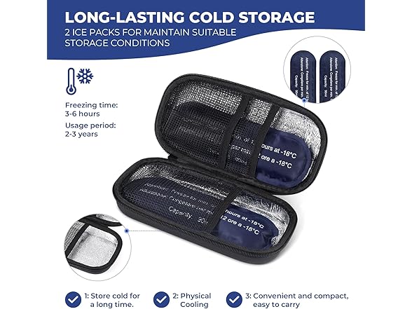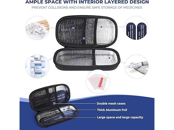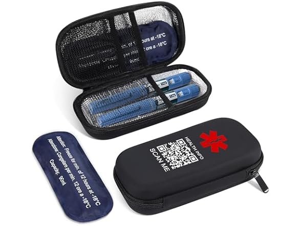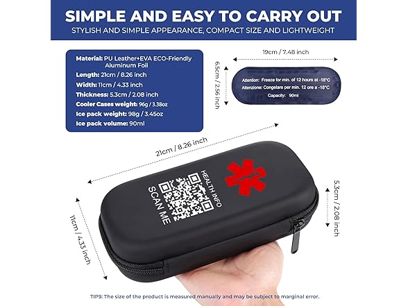 Theluckytag Insulin Cooler Travel Case - Insulated Portable Diabetic Organizer with 2 Reusable Ice Packs & Medical ID QR Code for Insulin Pens and Other Diabetic Supplies Daily Life Trip