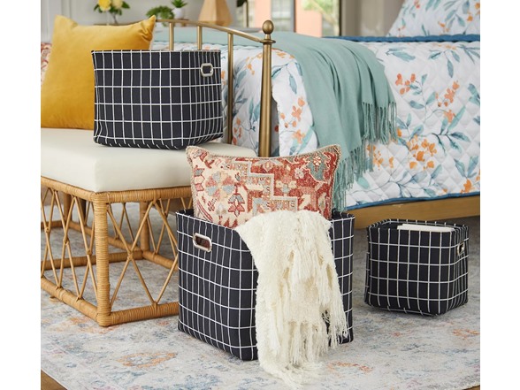 - Includes three nesting and collapsible storage bins
