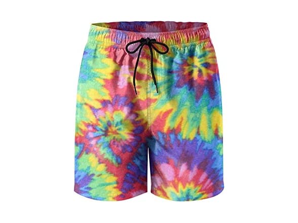 Tie Dye Anti Pill Plaid Mens Printing Beach Shorts Swim Trunk Quick Dry, Medium