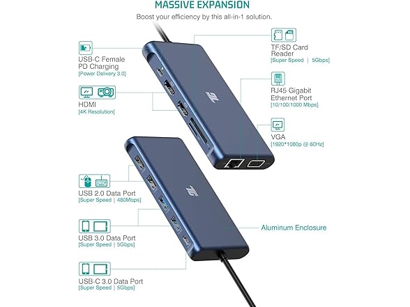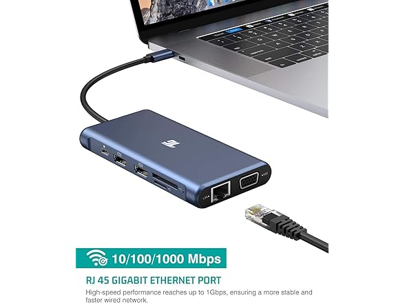 - More Connectivity: With a built-in Gigabit Ethernet port, this USB-C dock provides a fast and stable network connection, meeting your daily office needs; The USB C hub also features 4 USB 3.0 ports, a TF/SD card reader , which supports a variety of devices.