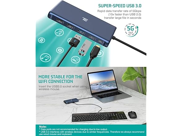 - Ultra-fast data transfer: 5Gbps data transfer speed via 3 USB-A 3.0 and 1 USB-C Port, which is 10 times faster than USB 2.0. No more waiting when you transfer files.