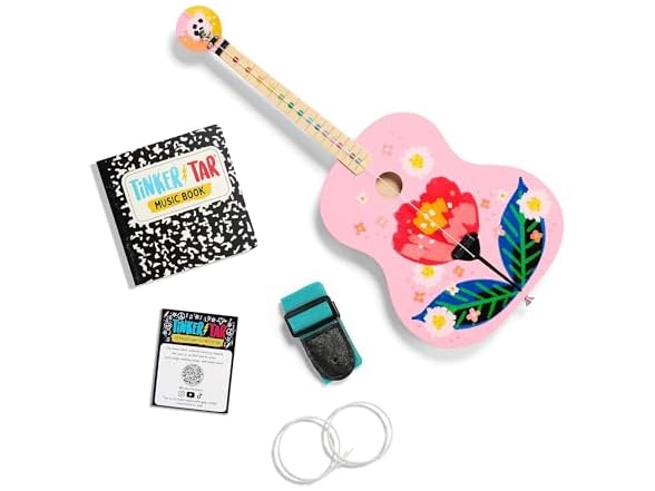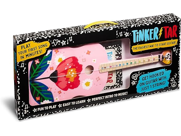 - Tinkertar Includes: 1-String Guitar, Guitar strap, 2 replacement guitar strings, and includes an instructional music book containing 12 kid-friendly songs
