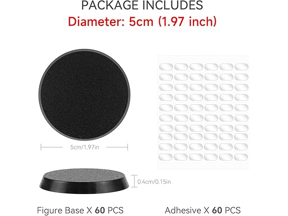 TITAWU 60PCS Miniature Bases+60PCS Adhesive, 50mm/1.97inch Textured Plastic Black Round Model Base for Gaming Miniatures or Wargames Table Top Games