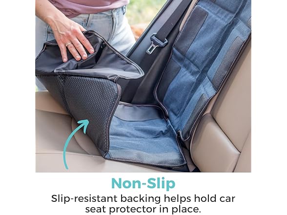 - NON SLIP & NON MARKING - Equipped with slip-resistant backing and a tuck-in flap, the seat protector stays securely in place, preventing any shifting during drives. The backing of the seat protector prevents bleeding color onto vehicle seats' material.