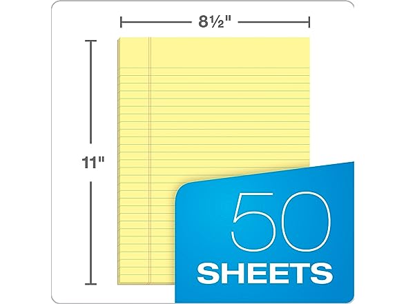 TOPS The Legal Pad Plus Writing Pads, Glue-Top, 8-1/2" x 11", Legal Rule, Canary Paper, 50 Sheets, 12 Pack (71522)