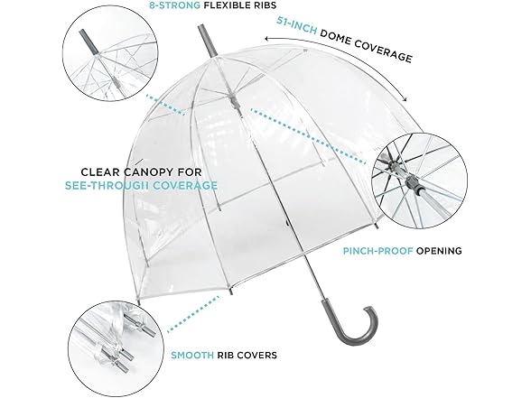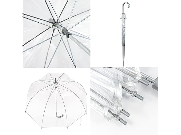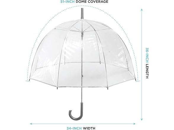 - DURABLE CONSTRUCTION: Our umbrellas are made to last; this clear dome umbrella features a steel shaft with a classic curved handle design, so your umbrella is easy to carry, rain or shine