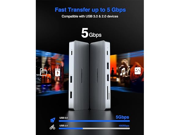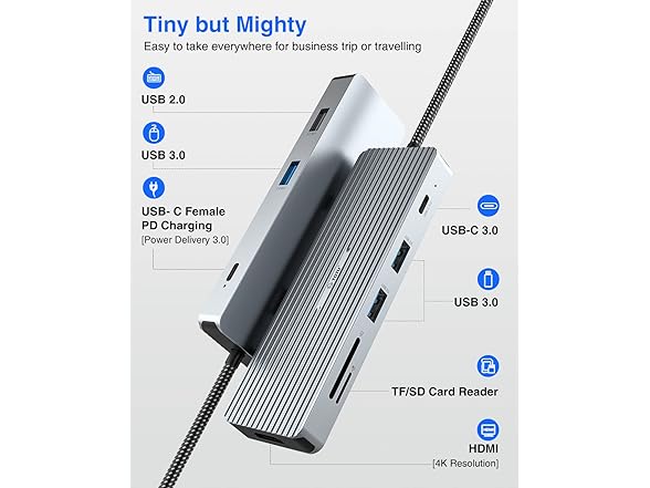 TOTU USB-C 9-in-1 Docking Station Hub - with 4K HDMI Port, 3 USB-A 3.0 Ports,1 USB-A 2.0 Port, 1 USB-C Port,SD/TF Card Reader,100W PD USB-C Power Delivery