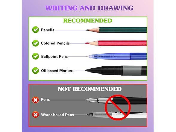 - SUGGESTION-Since the transparent sticky notes are made of waterproof PET, for a better user experience, we do not recommend using water-based pens, please use ballpoint pens, pencils, and oil-based markers to write on the sticky notes. If you use water-based pens ,you can let them dry for a while, don't wipe them off right away.