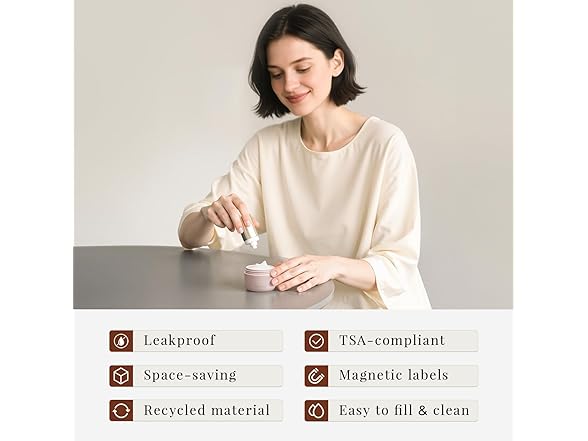 - 【TSA-Approved Leakproof Set — Lightweight, Compact, Ready to Go】 Includes three 30ml refillable bottles and five magnetic labels. Designed to meet TSA carry-on requirements, lightweight and spill-proof, this set is your perfect companion for business trips, vacations, gym sessions, and everyday skincare routines on the move. Get your Trimcoo set today and travel smarter!