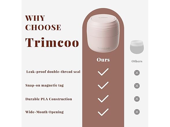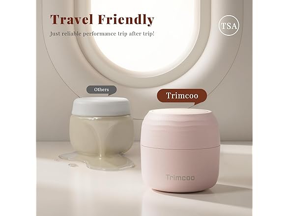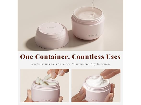 - 【Ultra LeakProof Jar】 Generic travel containers rely on flimsy single-thread lids that fail under pressure—resulting in wasted skincare products. Trimcoo’s solution? A precision-engineered dual-threaded sealing system paired with a food-grade silicone gasket, designed to create an airtight barrier that locks in liquids, even in extreme conditions. Whether your bag is jostled during a flight, flipped in a gym locker, or tossed in a backpack on a hiking trail, the seal remains intact.