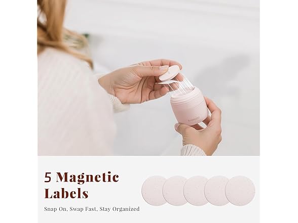 - 【Magnetic Labels — Snap On, Swap Fast, Stay Organized】 No more confusion or wasted time guessing what’s inside. Our 5 magnetic labels—Cleanser, Lotion, Shampoo, Conditioner, plus a Pill Icon—snap on instantly and swap easily to fit your changing routine. Perfect for busy mornings, travel packing, or gym essentials.