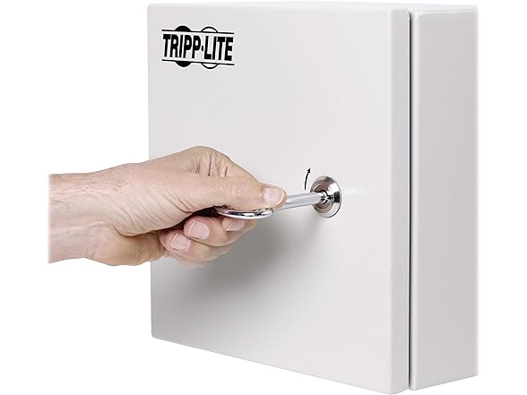 - SECURE LOCK & KEY: 14-gauge steel housing locks securely with the included key to protect its contents against theft. Weather-sealed door swings away on a sturdy hinge, allowing easy access to equipment. Cables may be routed through a bottom conduit cutout.