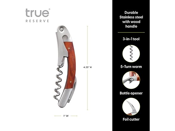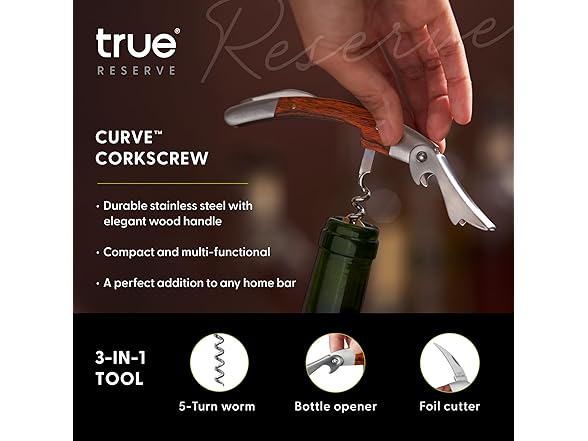 True Reserve Aereo Handheld Wine Aerator for Red and White Wines, Helps Enhance Flavor and Aroma, Home Bar Tools, Bar Cart Accessories, Gifts for Wine Lovers, Hosting Essentials, Set of 1