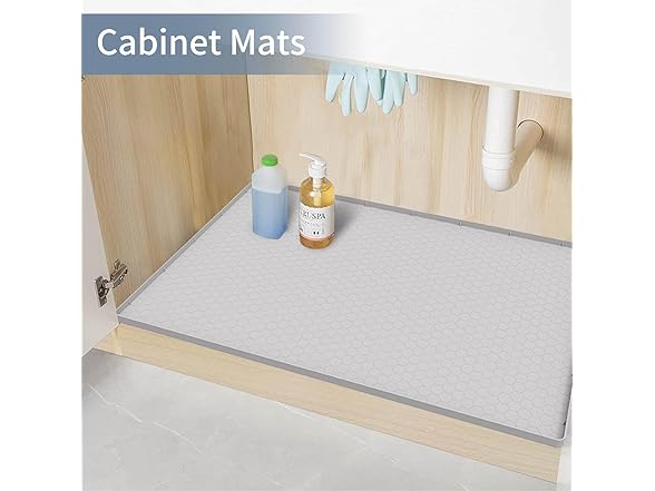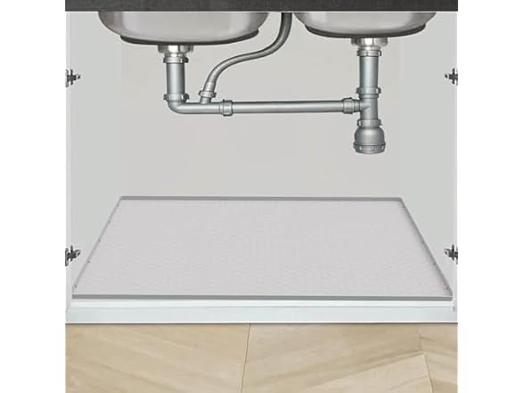 - Water Damage Protection - Designed to catch and contain water leaks, spills, and drips that can occur under sinks. This helps prevent water damage to the cabinet base, floor, and surrounding areas. By providing a barrier between the sink and the cabinet, these mats help avoid costly repairs and maintain the integrity of the cabinet material.