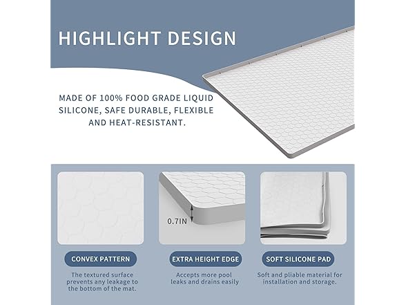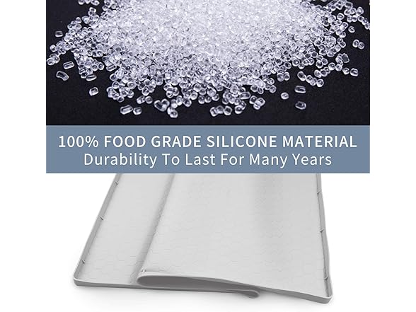 - Quality and Flexible Material - The silicone material offers a balance between flexibility and sturdiness, allowing the mat to conform to the shape of the cabinet floor while providing ample protection. The thickness offers more durability while not being too thick that it limits flexibility. The best feature of this material is non-slip to keep the mat securely in place. There are no designed shapes in the mat which will cause instability of the products you place on the mat.