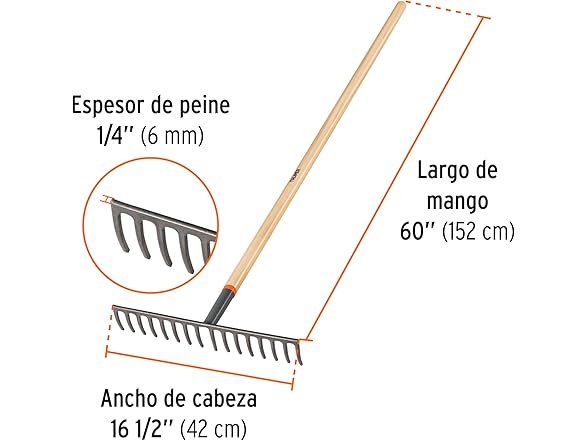 TRUPER R-16M Ash Handle Road Rake 16 1/2" (42cm)