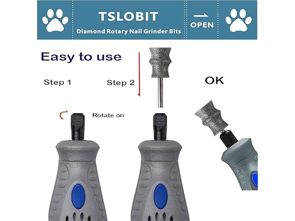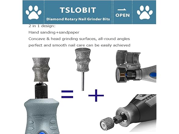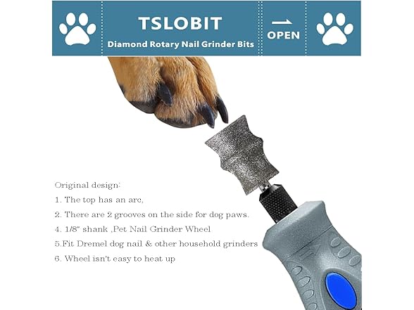 TSLOBIT Diamond Dremel Dog Nail Grinder Bits Attachment,1/8'' Pet Nail Grinder Wheel for Dremel Dog Nail Grinder, Diamond Rotory Bit for Dogs&Pets Nail Care(Large D