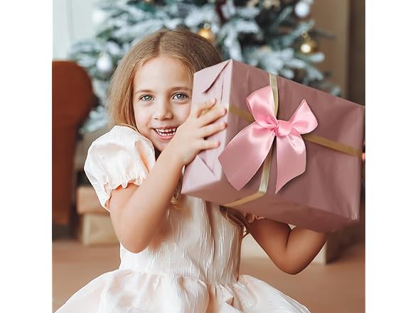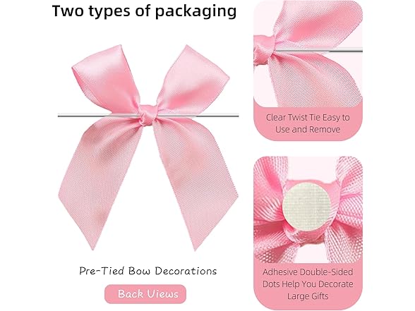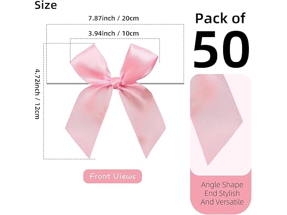 Twist Tie Bows, 50Pcs Pink Satin Ribbon Bows, 3.9'' Big Pre-Tied Pink Gift Bows for Gift Wrapping Treat Bag Present Craft Bridal Shower Wedding Girls Birthday Party Halloween Thanksgiving (Pink)