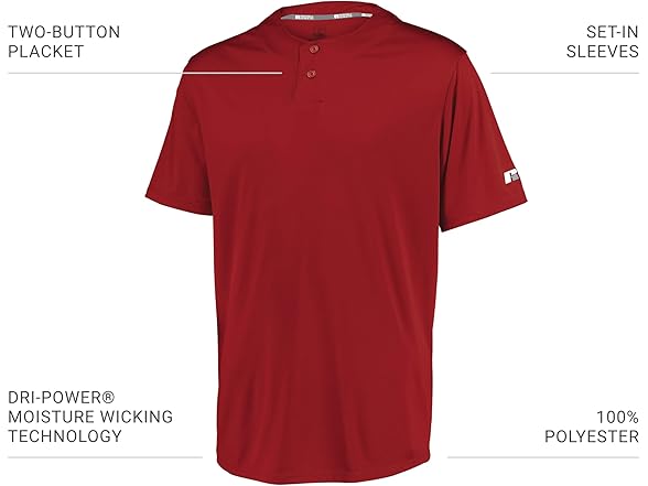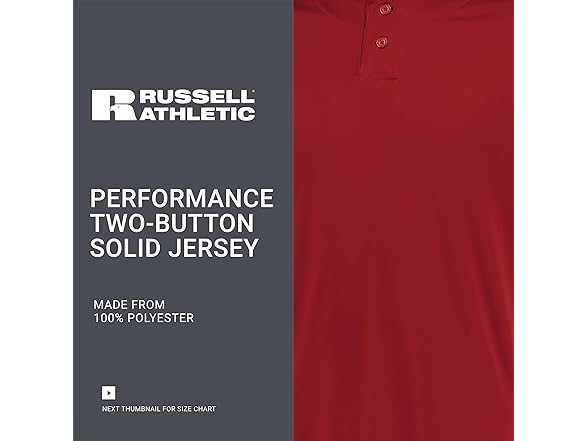 Russell Athletic Performance Two-Button Solid Jersey True Red M