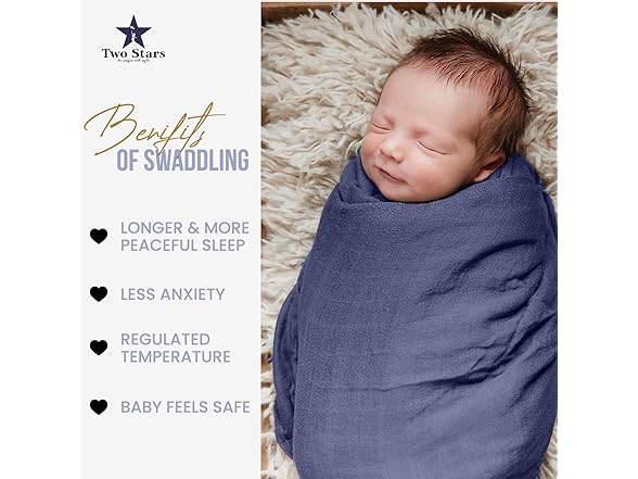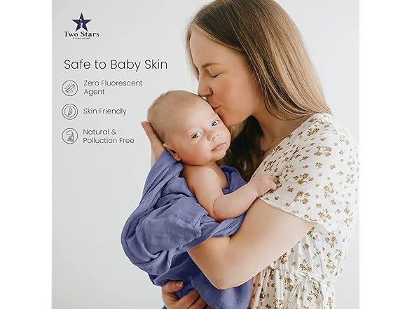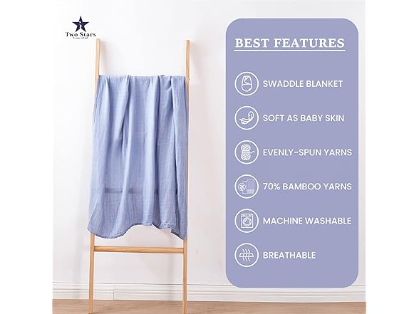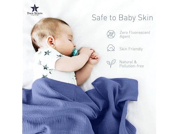 Two Stars Cotton Muslin Swaddle Blanket 1-Pack for Baby Girl 100% Cotton Muslin Extra-Large Swaddle Blankets (47” x 47”) (Light Blue)