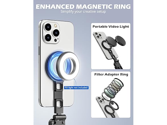 This 2-in-1 magnetic phone tripod is designed for creators on the go. Use it as a foldable MagSafe desktop stand or mount it on any tripod, gimbal, or selfie stick with a 1/4" screw. Made of premium aluminum alloy with strong magnetic force, it ensures a stable hold for iPhone 17/16/15/14/13/12 series and other smartphones using the included metal ring. Compact, durable, and ready for travel, filming, video calls, and more.