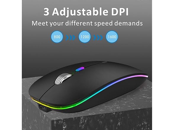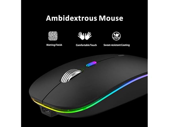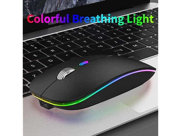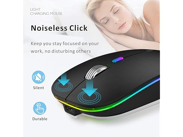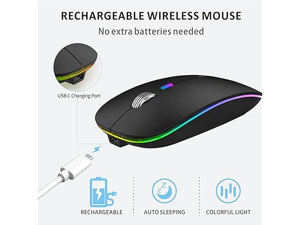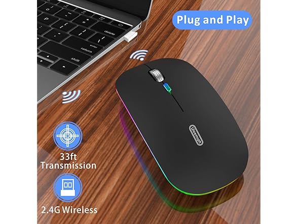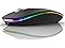 Uiosmuph LED Wireless Mouse, G12 Slim Rechargeable Silent Mouse, 2.4G Portable USB Optical Computer Mice with USB Receiver and Type C Adapter (Matte Black)