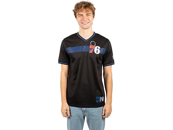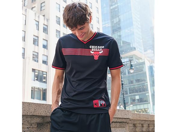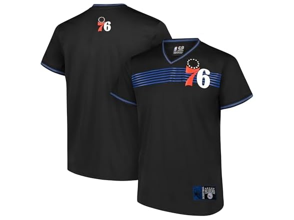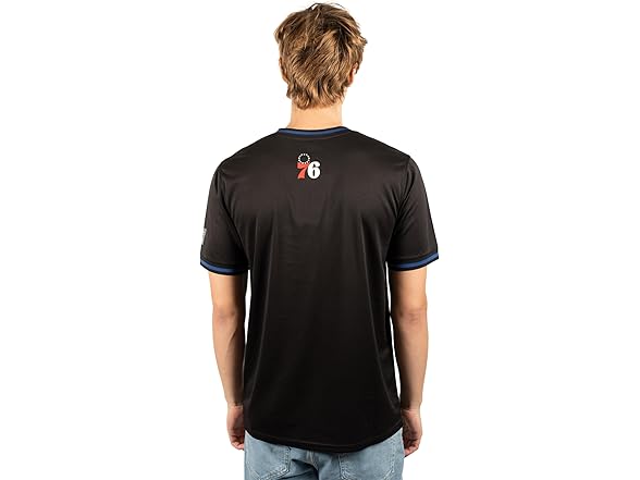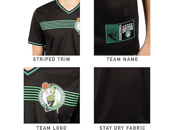 - STYLISH STRIPE TRIM: A modern strip trim is on the collar and sleeve hems. The stripe compliments the official NBA team colors in the graphic logo too!