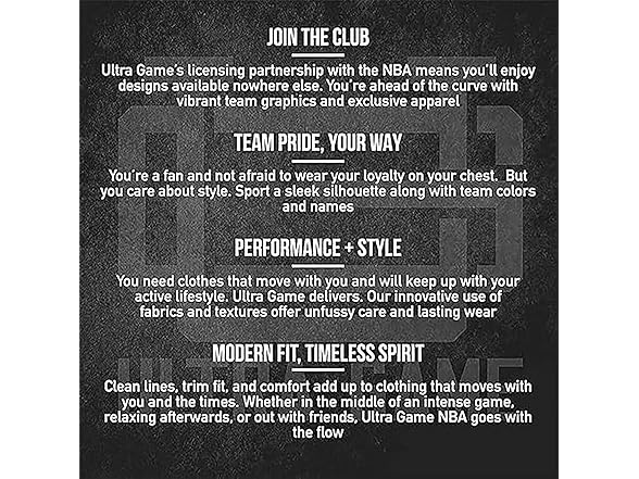 - ULTRA GAME NBA APPAREL - Officially Licensed By The NBA (National Basketball Association), Ultra Game NBA features innovative designs with forward-thinking graphics and textures.