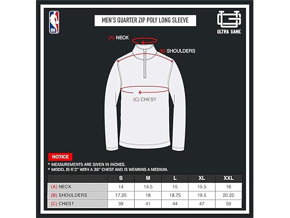 Ultra Game NBA Men's Quarter Zip Long Sleeve Pullover T-Shirt
