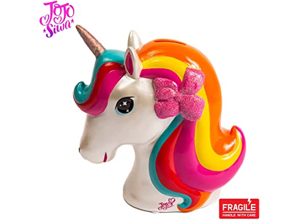 JoJo Siwa Unicorn Coin Bank - Unicorn Piggy Bank for Girls with Rubber Stopper