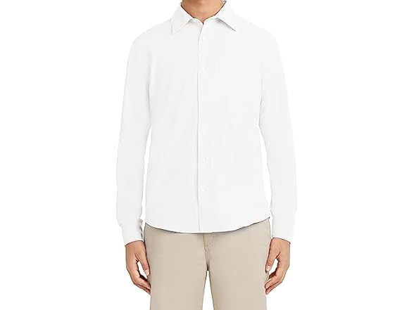 Nautica mens Uniform Long Sleeve Stretch Oxford Shirt, White, 36-37 US