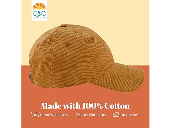 C and C California Baseball Cap, Corduroy Cotton Baseball Hat with Curved Brim, Camel, One Size