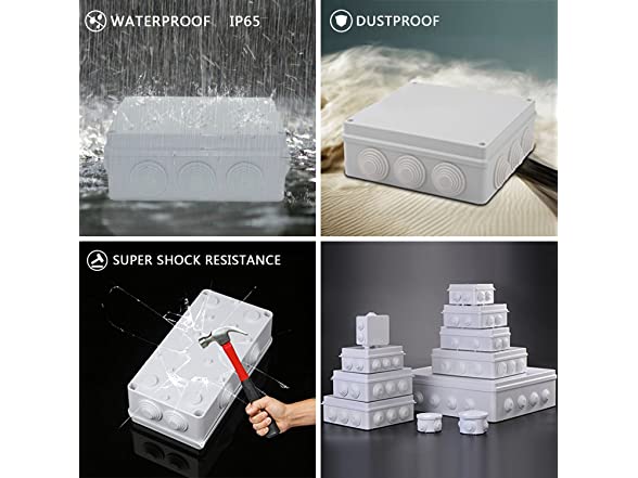 LeMotech ABS Plastic Dustproof Waterproof IP65 Junction Box Universal Electrical Project Enclosure White 10 x 7.9 x 3.1 inch (255 x 200 x 80 mm)