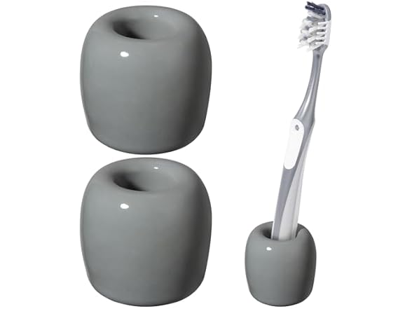 Urbanstrive Ceramic Toothbrush Holders for Bathrooms, Sleek Tooth Brush Holder Toothbrush Stand Tooth Brushing Holder, Portable Bathroom Accessories Organizer, Grey, 2 Pack