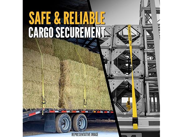 - VERSATILE - The 50 foot long ratchet straps work great for professional drivers seeking 2 inch ratchet straps to secure large equipment, heavy cargo, and irregular or tall items. These trailer straps can be used as hay straps to secure hay bales.
