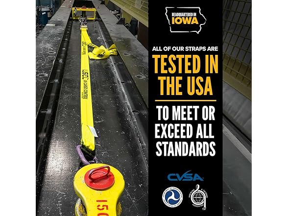 - QUICK IDENTIFICATION - Our flatbed straps have working load limit tags and are compliant with US DOT & Commercial Vehicle Safety Alliance (CVSA) guidelines, and meet Web Sling & Tie Down Association (WSTDA) standards. Also meets WSTDA T1 standards.