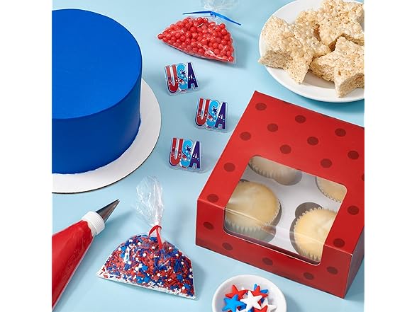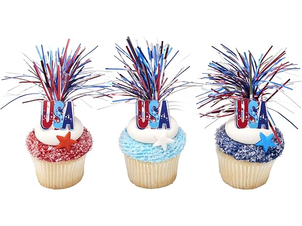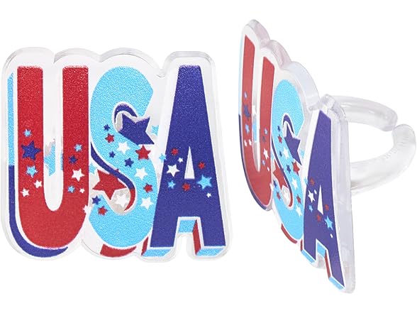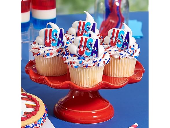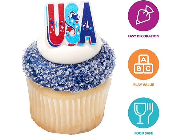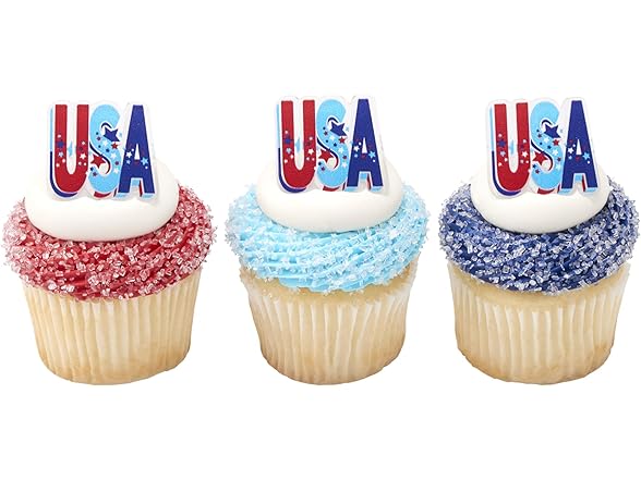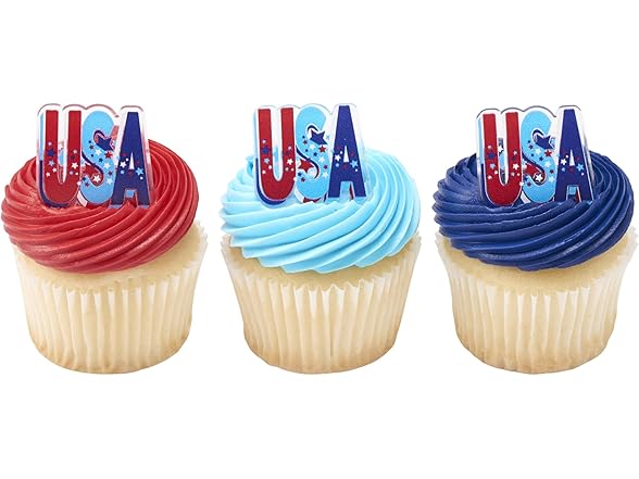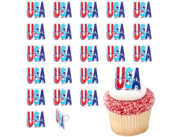 USA Cupcake Rings, 24 Red, White & Blue Cake Toppers For July 4th, Independence Day, Stars & Stripes, America - 24 Pack