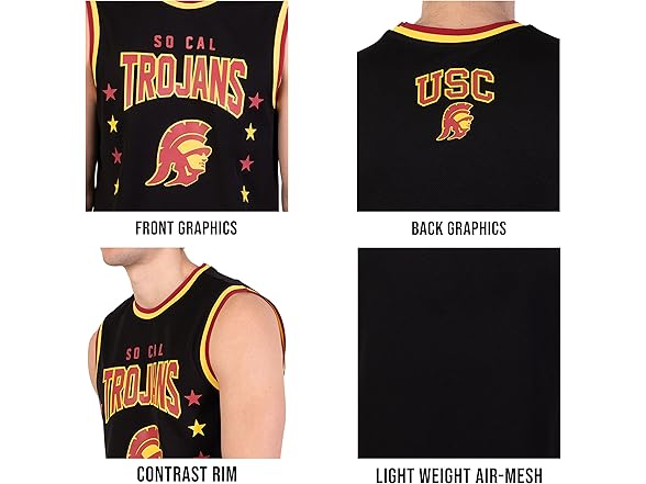 Ultra Game NCAA Men's Tank Top Mesh Sleeveless Muscle T-Shirt, USC Trojan, Black, XX-Large
